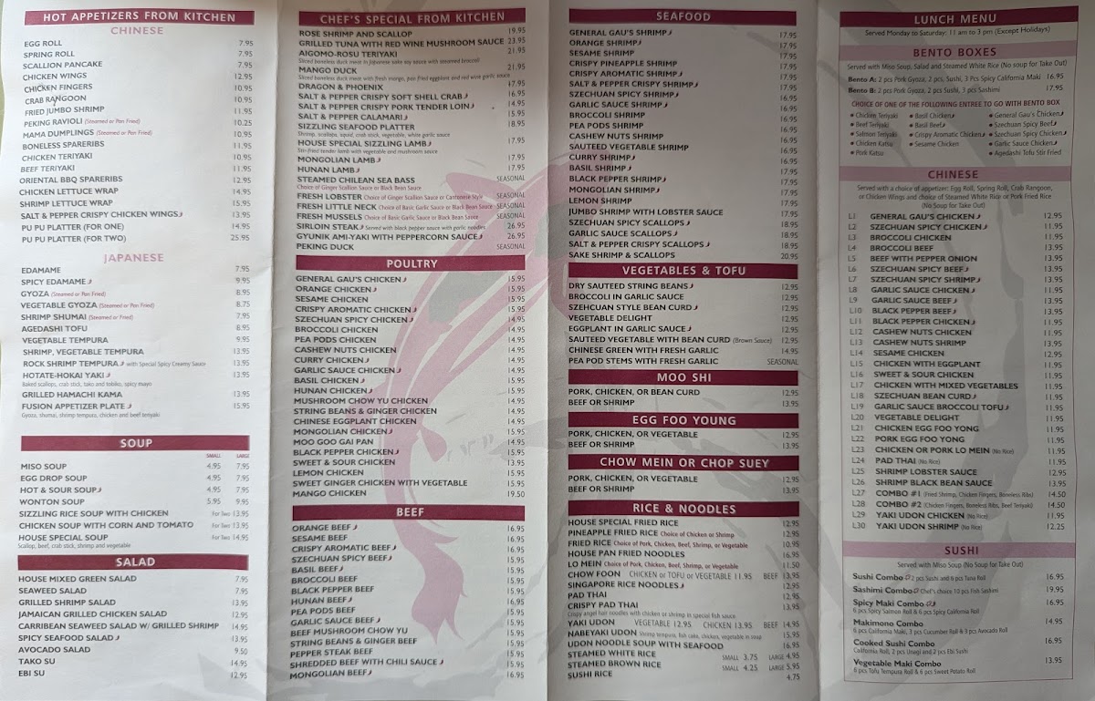 Step inside and experience a warm, inviting atmosphere complete with thoughtful service. Renowned for its fresh ingredients, every dish—from the hearty hot and sour soup to the expertly crafted sushi—offers a delightful taste. The bento boxes stand out for lunch, providing excellent value without sacrificing quality. Customers rave about their favorites like the Szechuan scallops and delectable Polynesian comfort food.